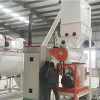 Feed production line mainly includes raw material receiving and cleaning system, crushing system, batching and mixing system, pelletizing system, finished product packaging system, and palletizing.